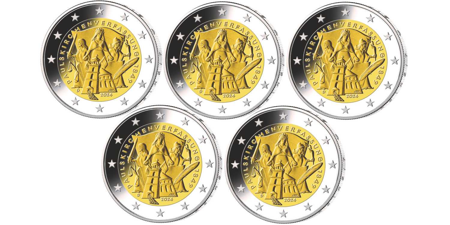 2€ Conmemorativos ALEMANIA 2024 que conmemora el 175 Aniversario de la Constitución de la Paulskirche, conocida como Constitución de la iglesia de San Pablo, aprobada en 1849 y primer intento de una constitución nacional y democrática en Alemania.
