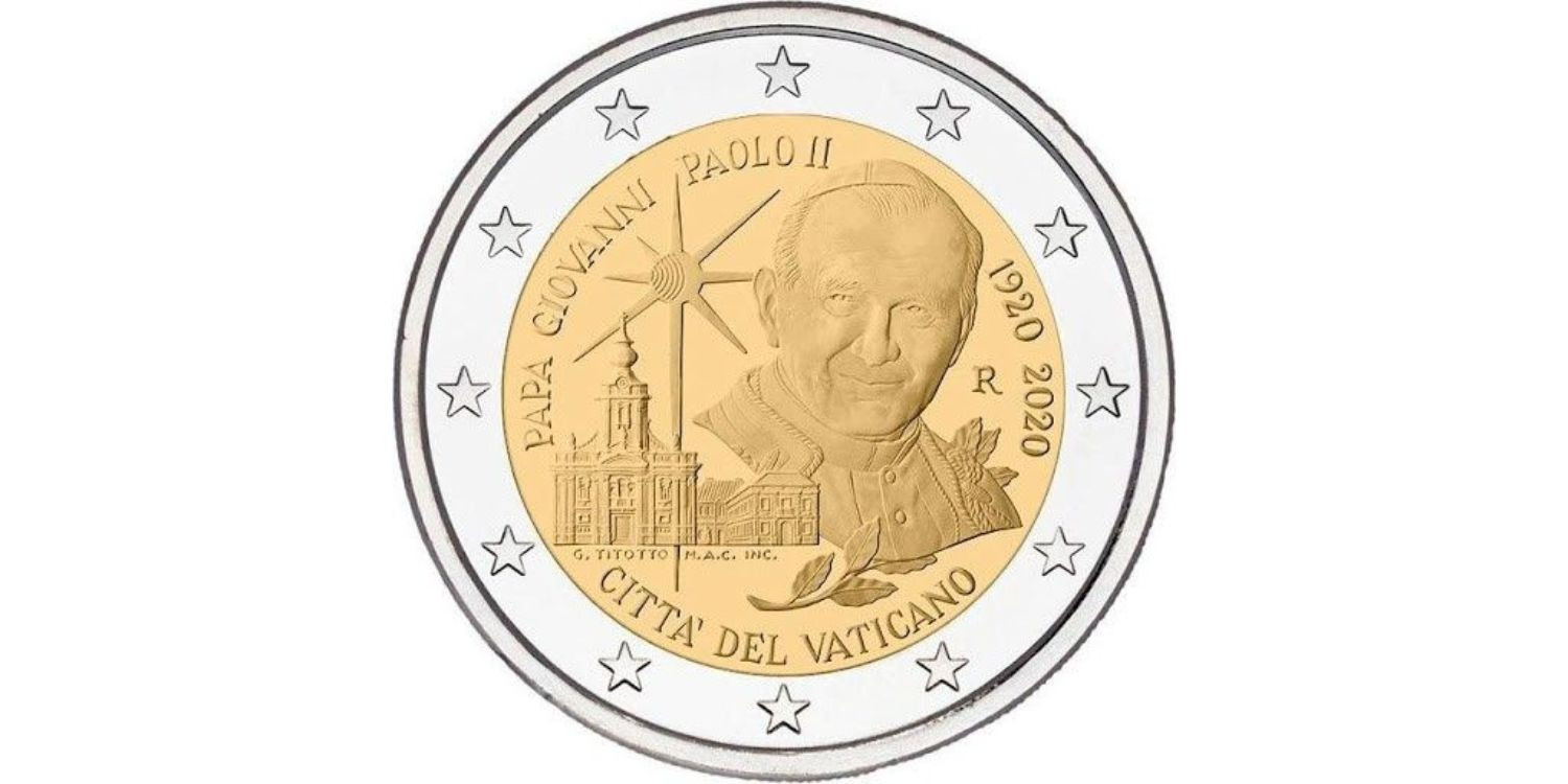 Moneda de 2 euro de Vaticano conmemorativa del 100º aniversario del Nacimiento de juan Pablo II