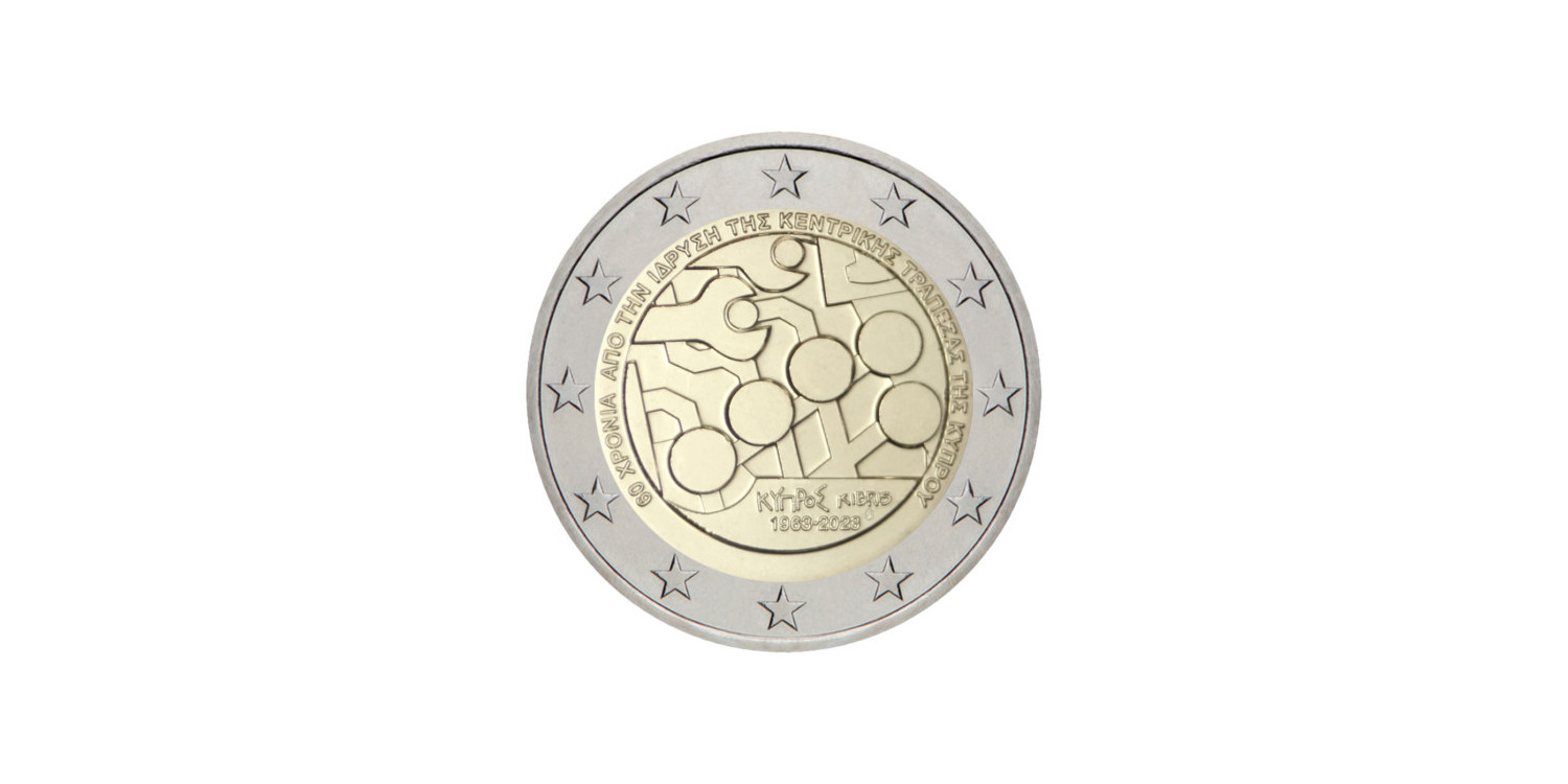 2 euros 2023 conmemorativa dedicada a 60º Aniversario del Banco Central Chipriota