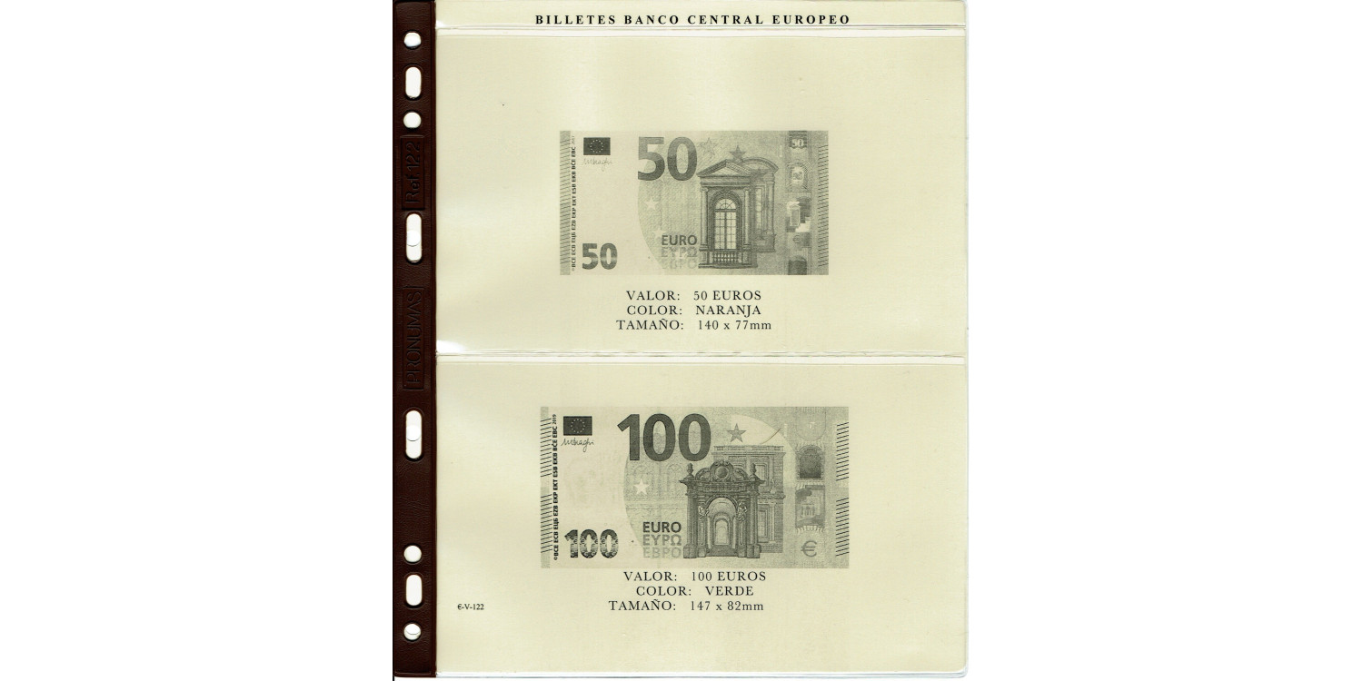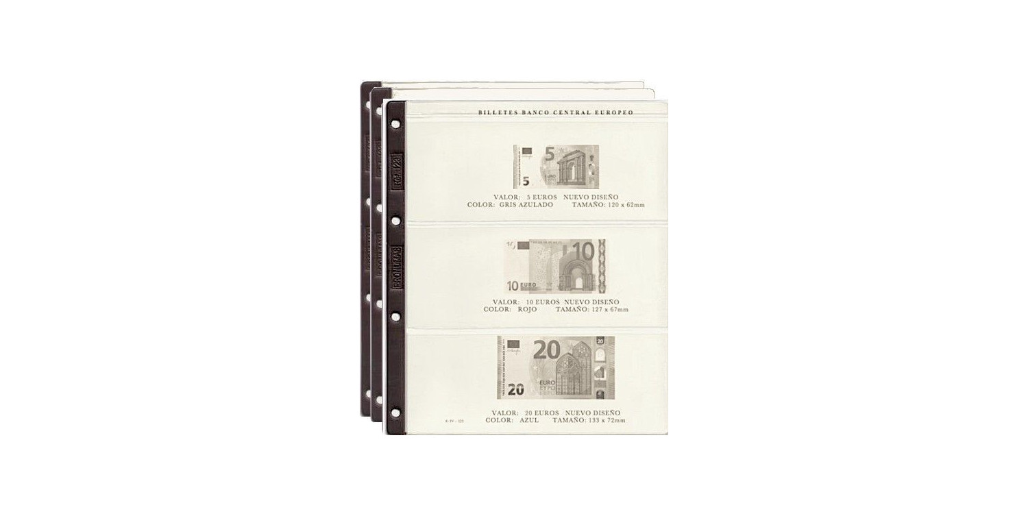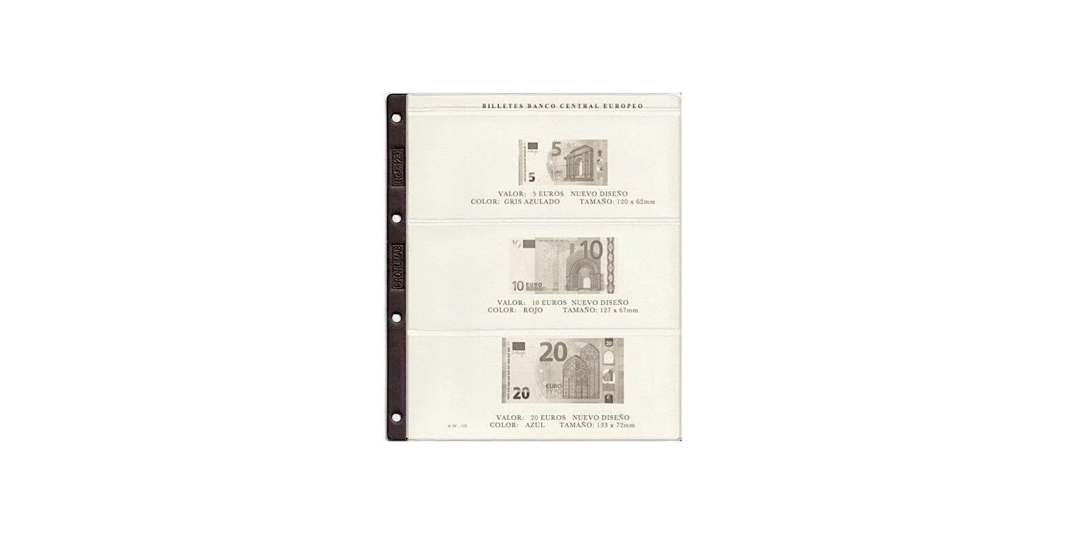 Bloque de hojas especifico para contener los billetes de 5, 10, 20, 50, 100 y 200€ de nuevo diseño.