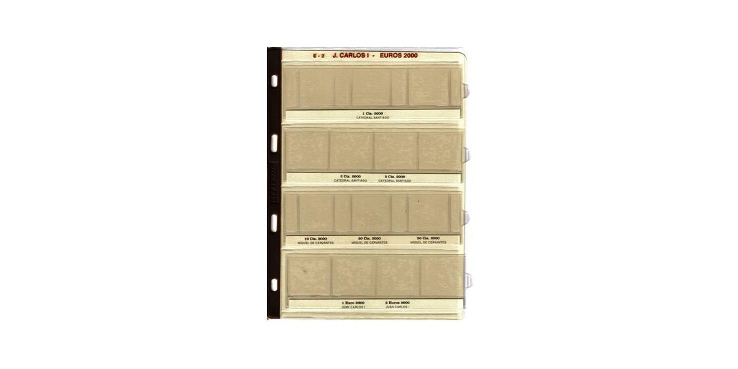 Hoja especifica para alojar las 8 piezas Euro acuñadas en 2000. Lomo reforzado