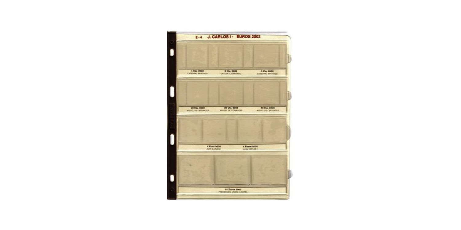 Hoja especifica para alojar las 8 piezas Euro acuñadas en 2002 incluida la moneda de 12 €. Lomo reforzado .