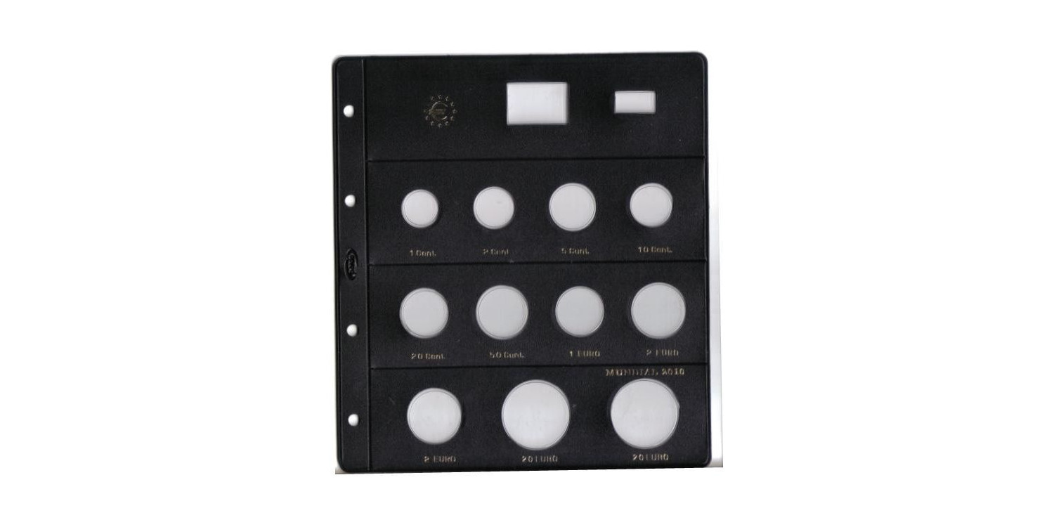Funda tipo claraboya, con bandera del pais y año personalizable. Incluye cartulina separadora. Especial para la serie de € España 2011. Incluye alojamiento para la moneda de 20 € de 2010.
