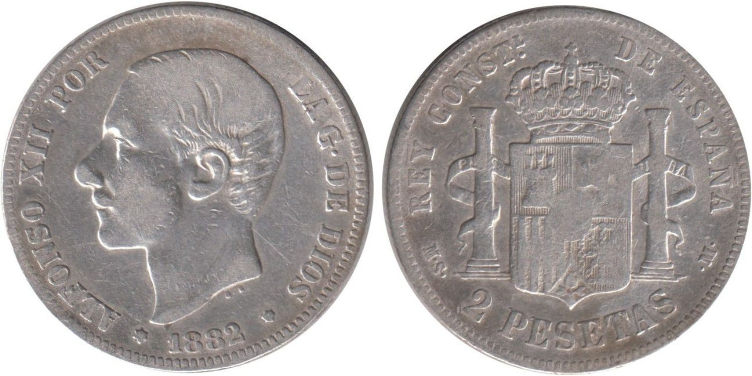 2 Pesetas1882 (---) MSM - Madrid - plata, BC