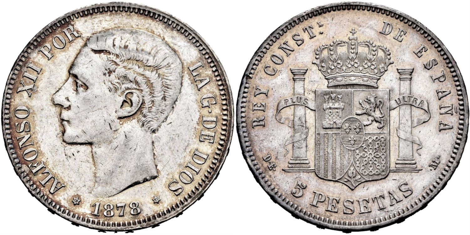 Cy16583i.- ALFONSO XII 5 Peseta 1878 (18-78) D.E.M.- EBC