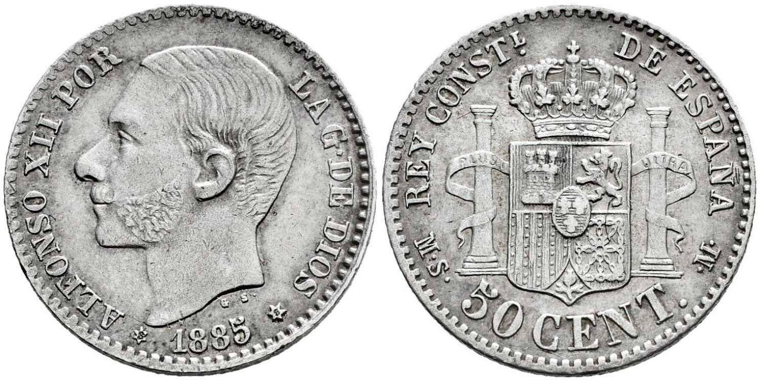 Cy16565H.- ALFONSO XII 50 Centimos 1885 ( 8-6) EBC-