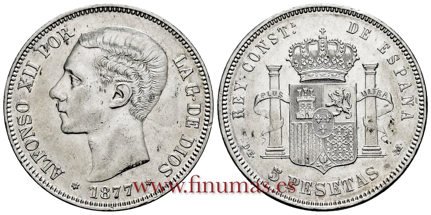 Cy16582G.- ALFONSO XII 5 Pesetas 1877 (18-77) DEM.- EBC-. R.B.O