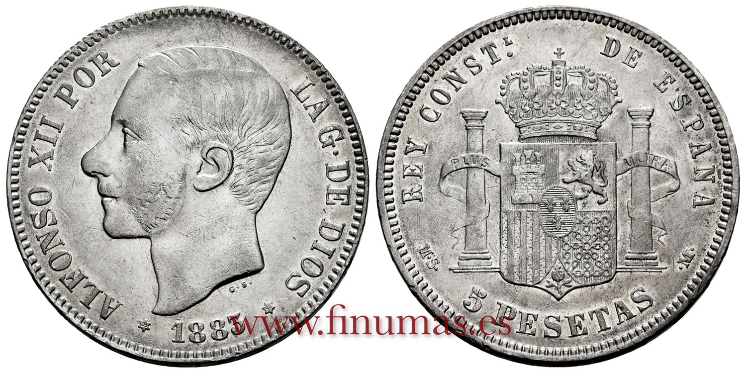 Cy16590I.- ALFONSO XII 5 Pesetas 1883 (18-83) MSM.- EBC+