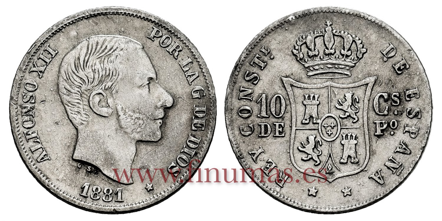 Cy16618E.- ALFONSO XII 10 Ctm. de Peso 1881 Manila - MBC