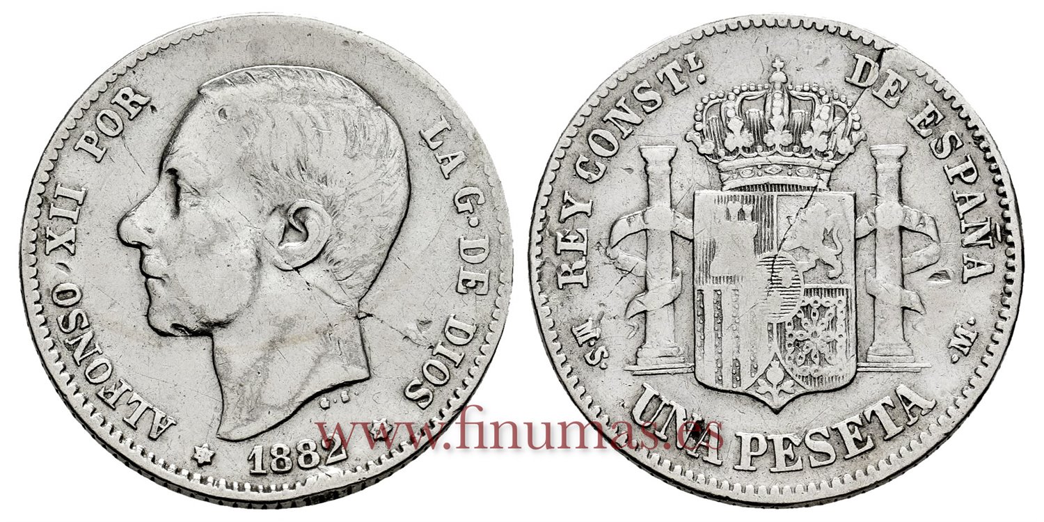 Cy16568D.- ALFONSO XII 1 Pesetas 1882 (18-82) MSM.- MBC-