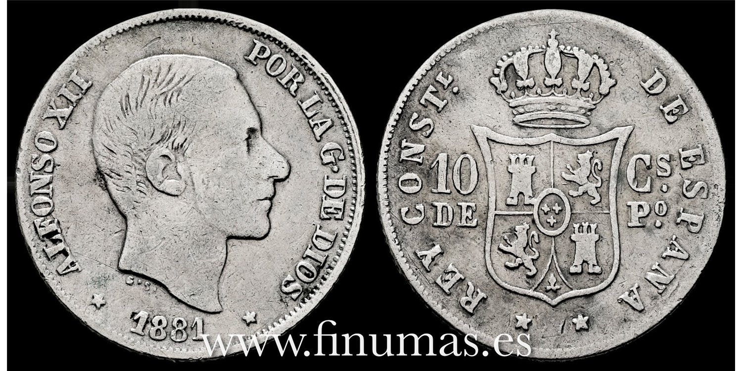 Cy16618C- ALFONSO XII 10 Ctv. Peso 1881 Manila - BC