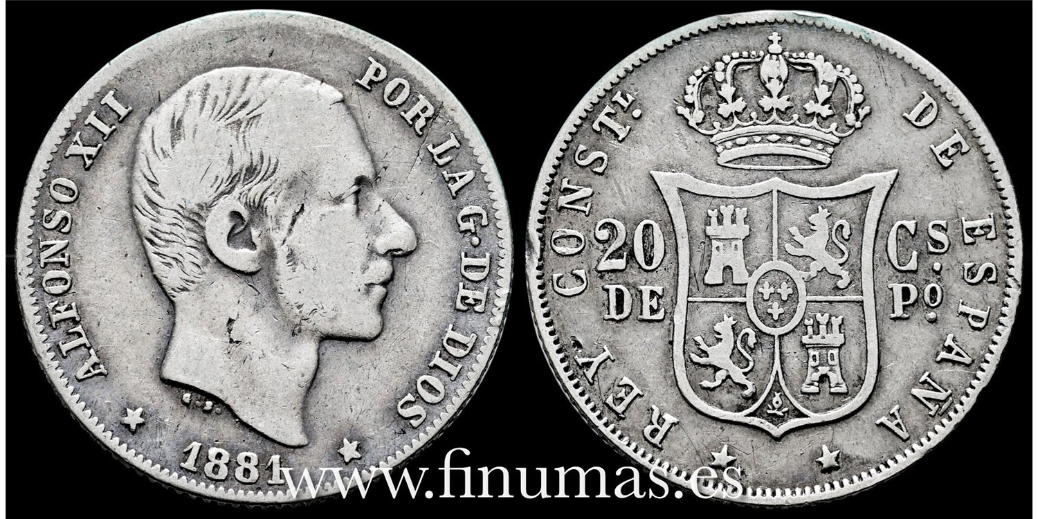 Cy16625C- ALFONSO XII 20 Ctv. Peso 1881 Manila - BC