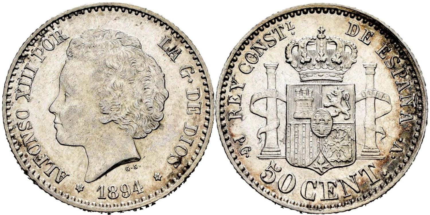 Cy16663h.- ALFONSO XIII 50 Centimos 1894 (9-4) PGV- EBC