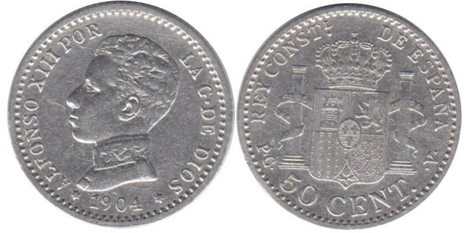50 Céntimos 1904 (1-0) PCV,- Madrid - plata, EBC