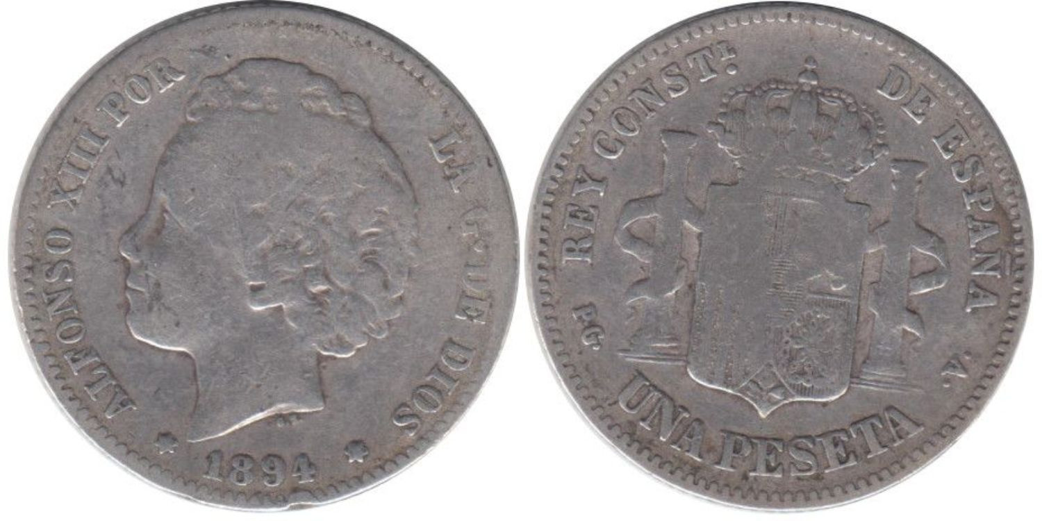 1 Peseta 1894 (---) PGV - Madrid - plata, BC+