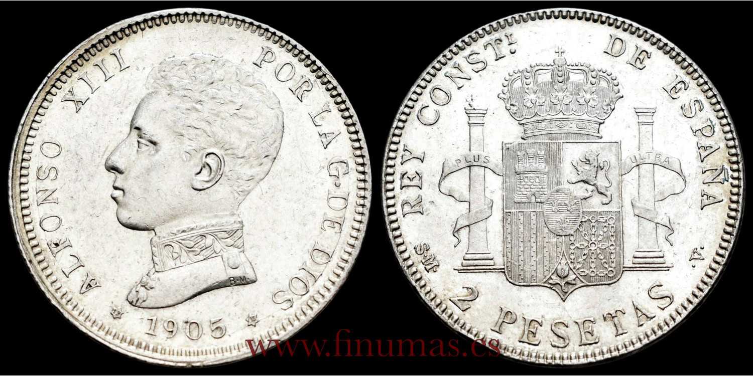 2 Pesetas 1905 (19-05) SMV - Madrid - plata. Sin Circular