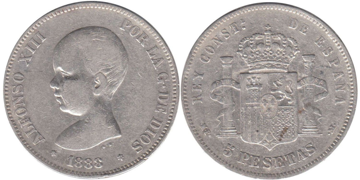 5 Pesetas 1888 (18-88) MPM - Madrid - plata, BC