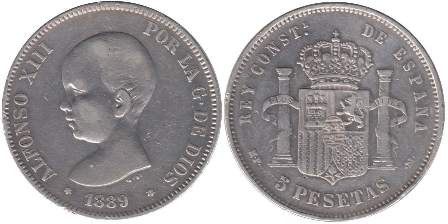 5 Pesetas 1889 (---89) MPM - Madrid - plata, BC