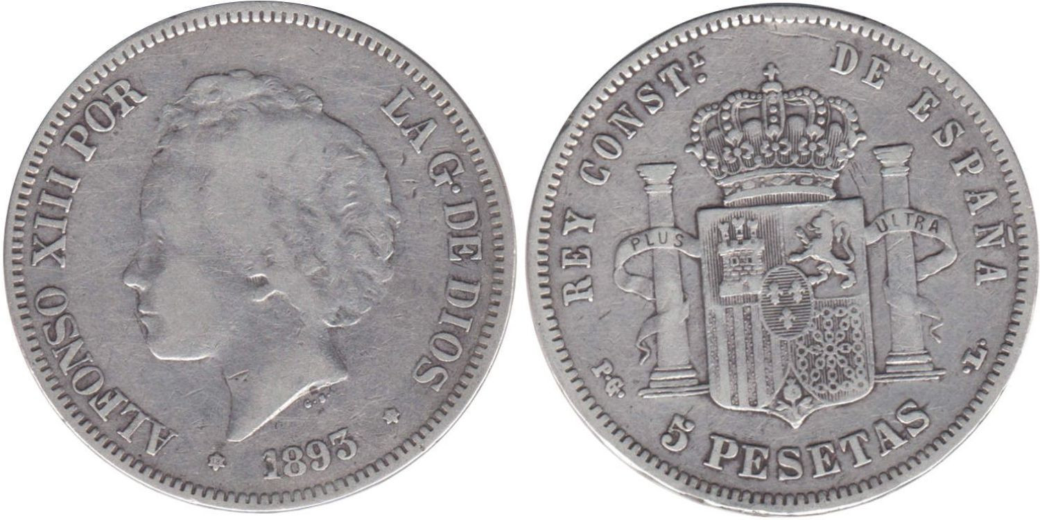 5 Pesetas 1893 (18-93 - Madrid - plata BC
