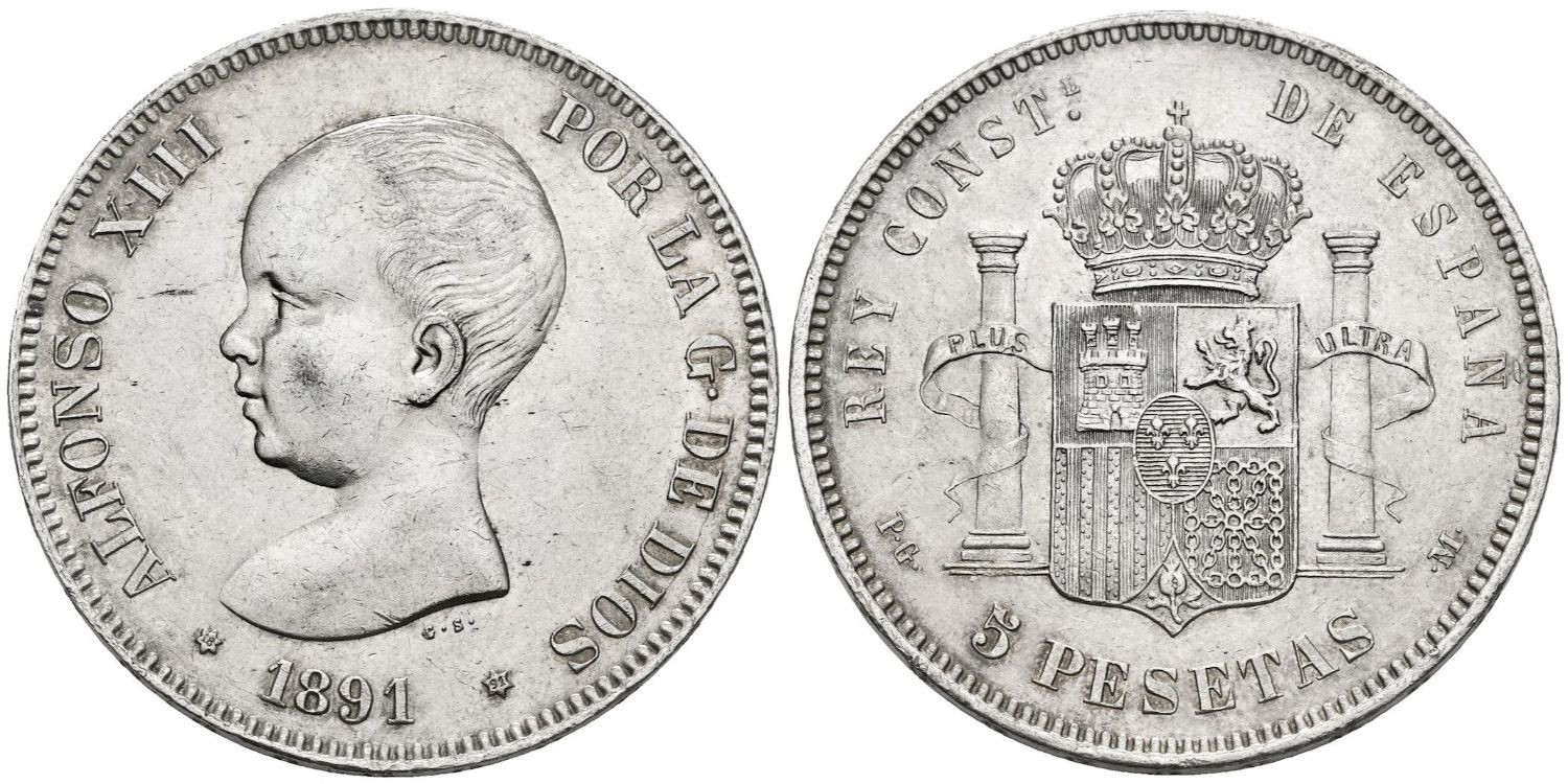 5 Pesetas 1891 (18-91) PGM - Madrid - plata, EBC- o algo mas. Tono