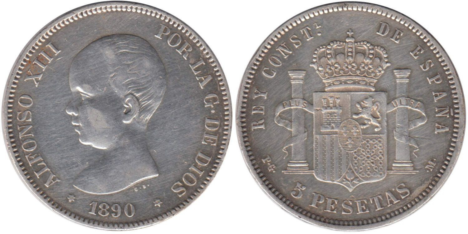 Cy16697F.-ALFONSO XIII - 5 Pesetas 1890 (18-90) PGM, MBC+