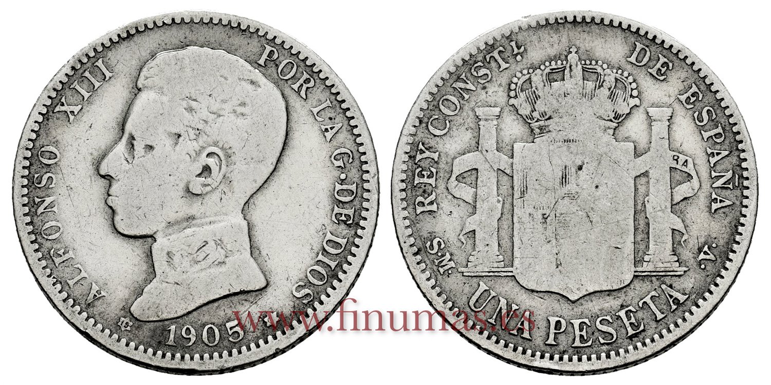 Cy16683C-1.- ALFONSO XIII 1 Pesetas 1905 (_-_) SMV - BC