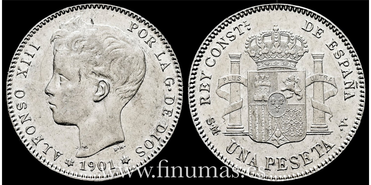 Cy16679F.- ALFONSO XIII 1 Peseta 1901 ( 19-01) M.S.M. - MBC+