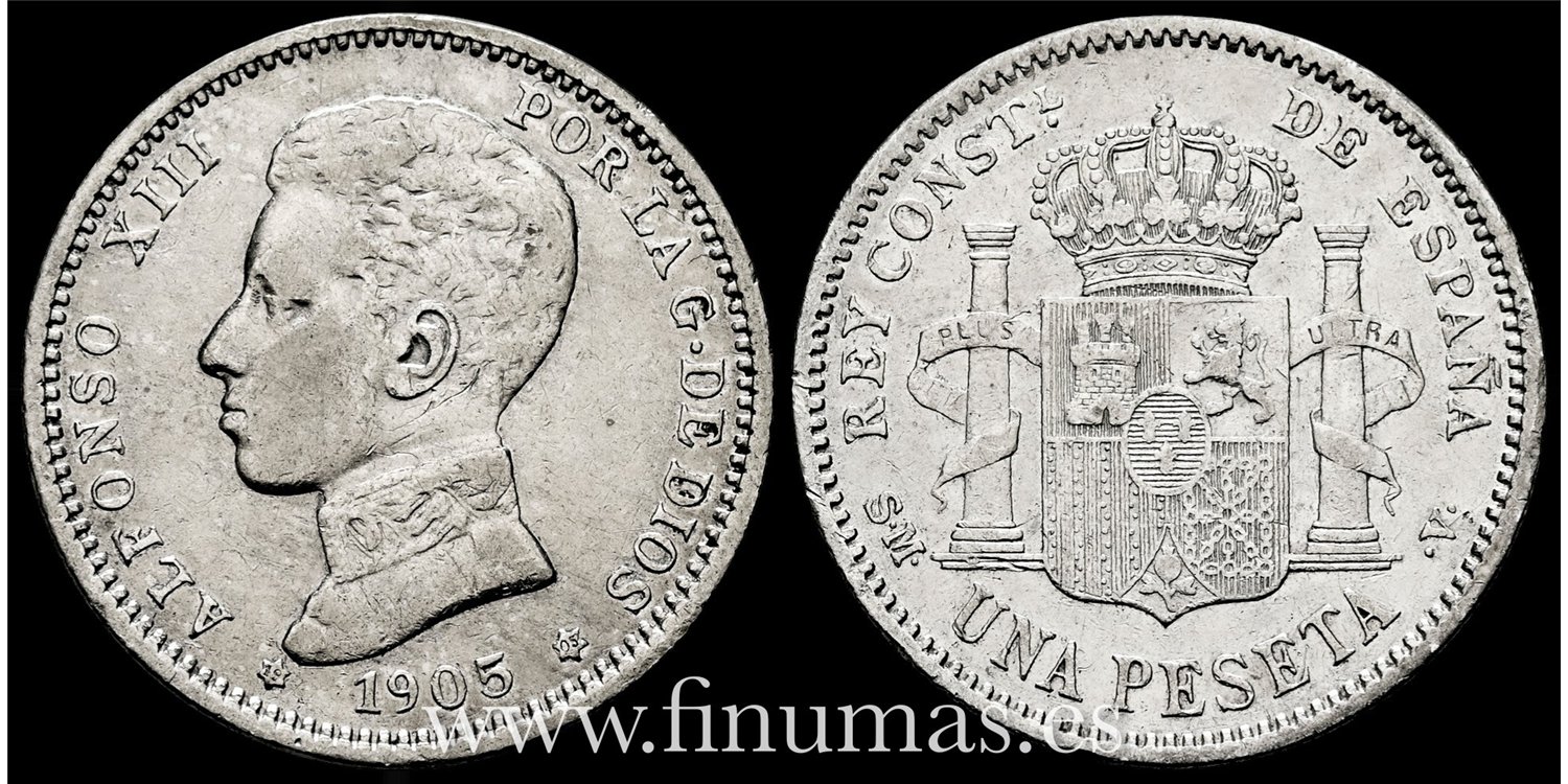 Cy16683E.- ALFONSO XIII 1 Peseta 1905 ( 19-05) S.M.V.- MBC