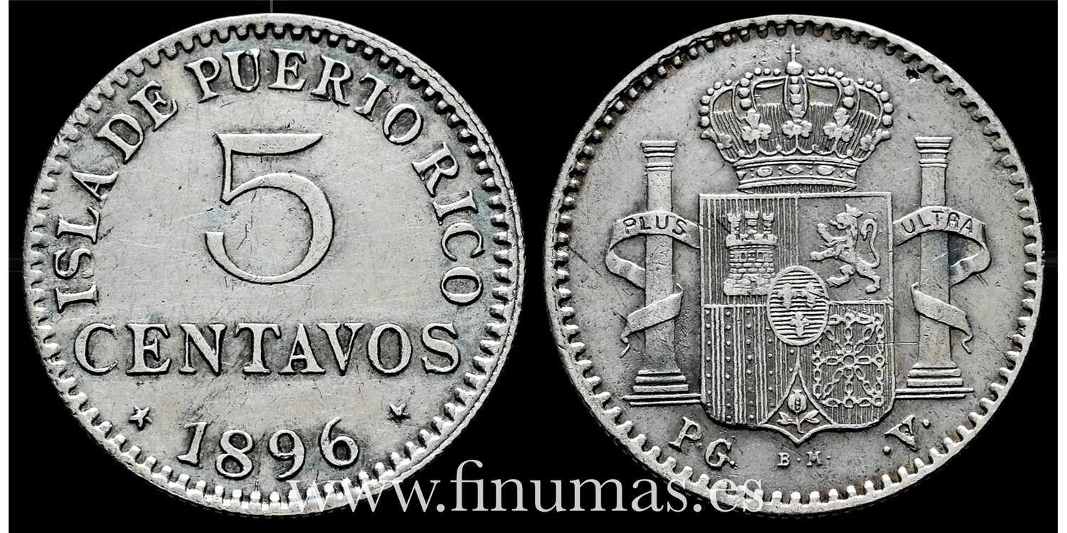 Cy16715F.- ALFONSO XIII 5 Ctv. Peso 1896 Puerto Rico. - MBC+
