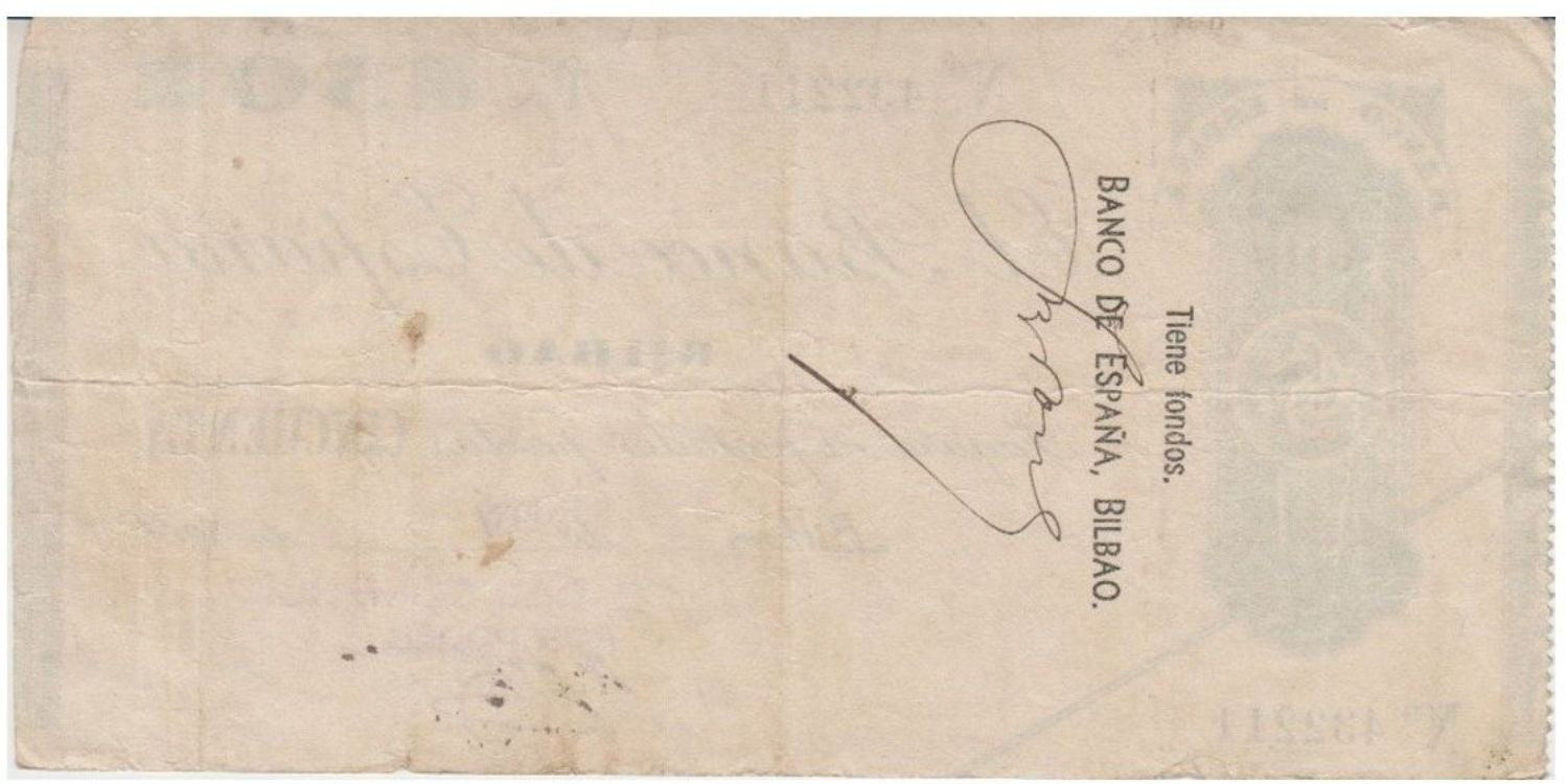 Talones al portador contra cuentas corrientes del Banco de España. Existen 9 antefirmas diferentes según los bancos libradores. Tamaños 165 x 73 mm.