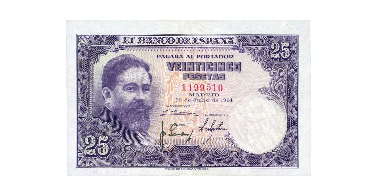 F454H.- 25 PESETAS 22 DE JULIO 1954 SIN SERIE - EBC