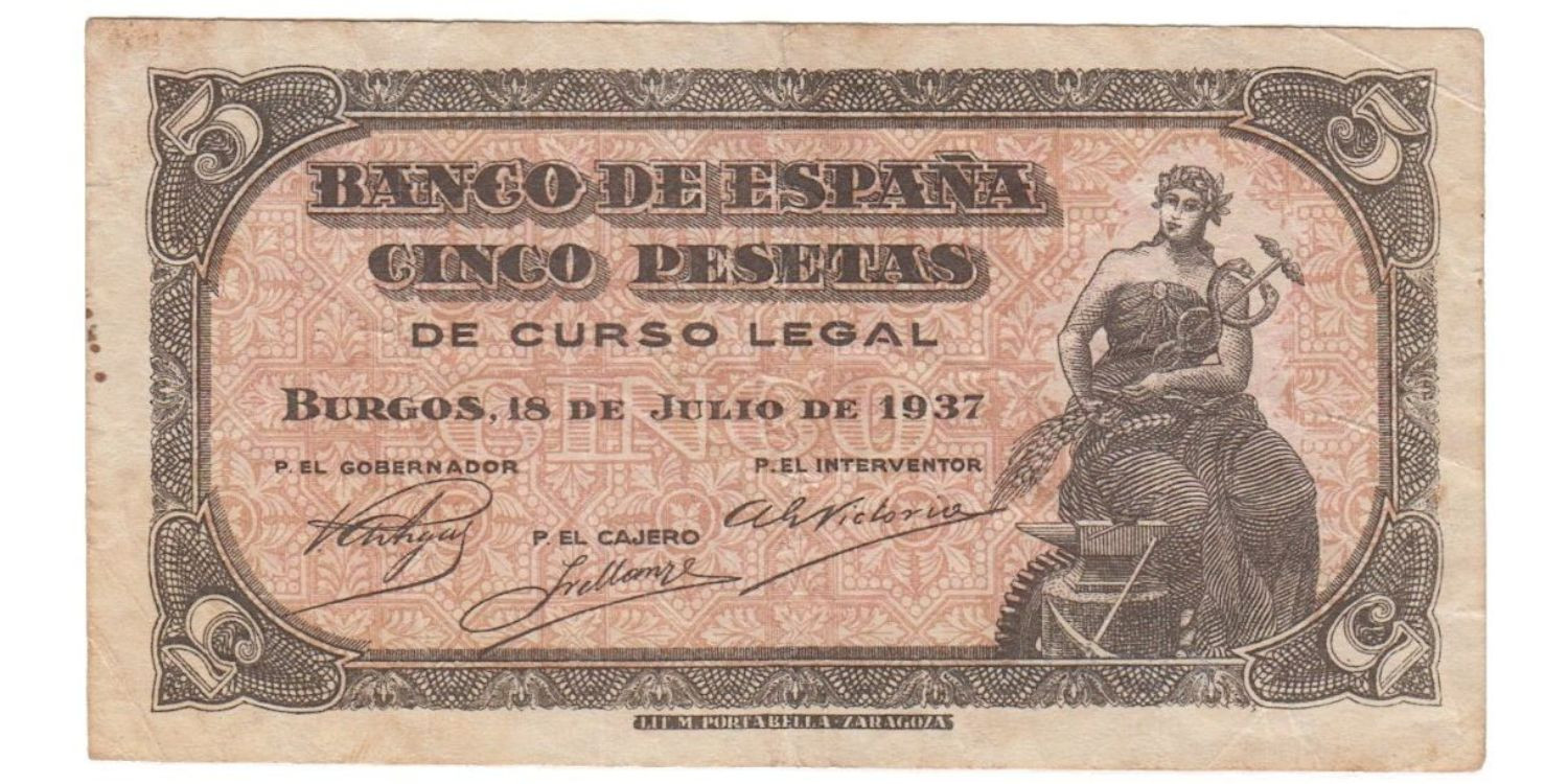 F432D.- 5 PESETAS 18 DE JULIO 1937 .SERIE B - MBC-