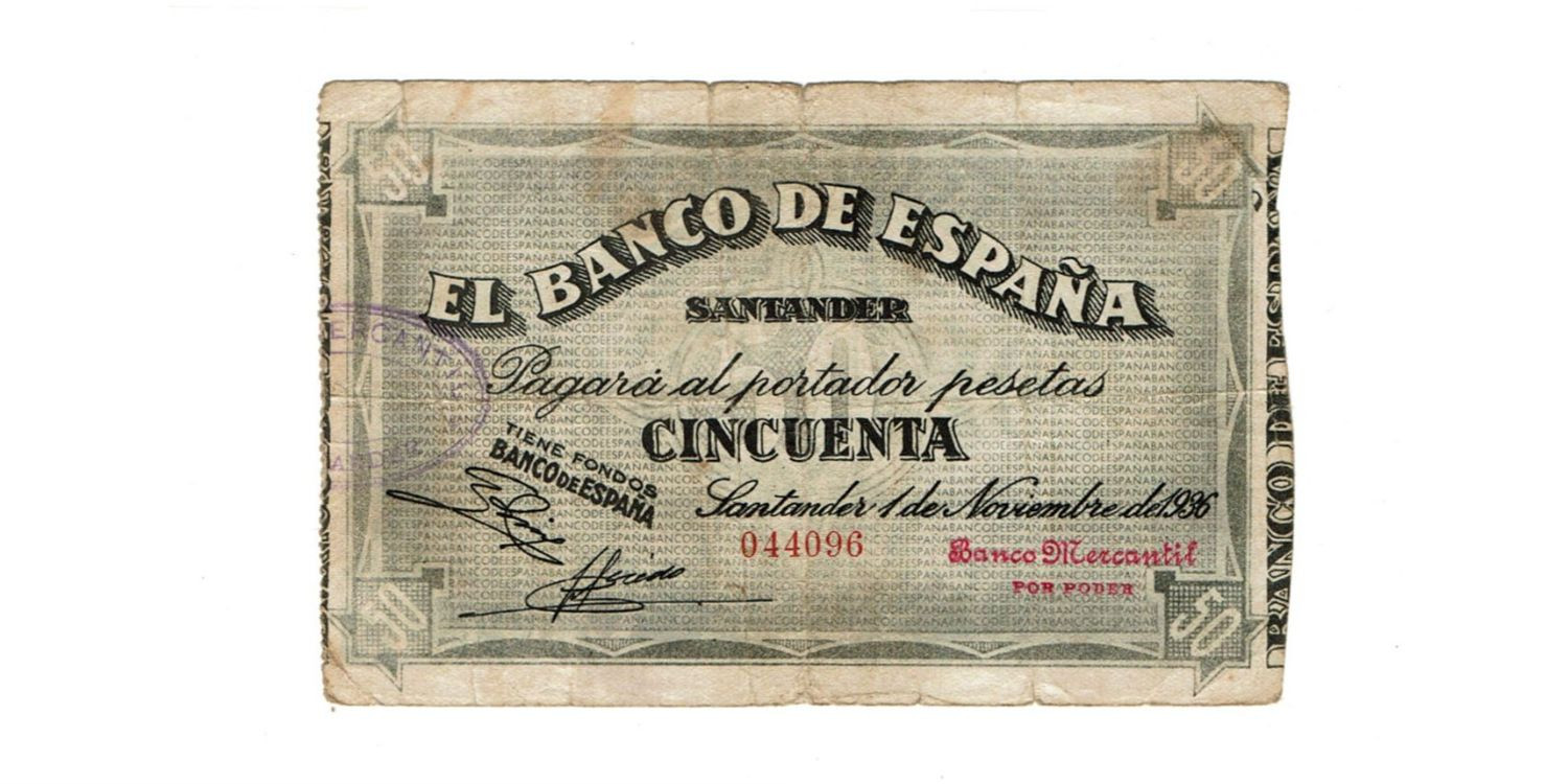 Talones al portador contra cuentas corrientes del Banco de España. Existen 6 antefirmas diferentes según los bancos libradores.
