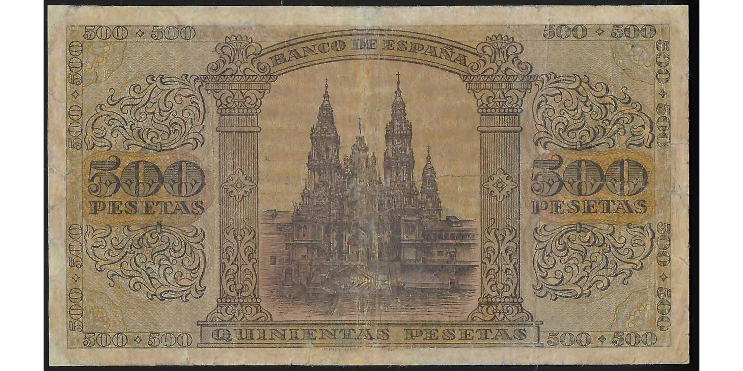 F475C - 500 Peseta 20-05-1938 serie A. BC+ Ligera reparación experta. Buen aspecto general