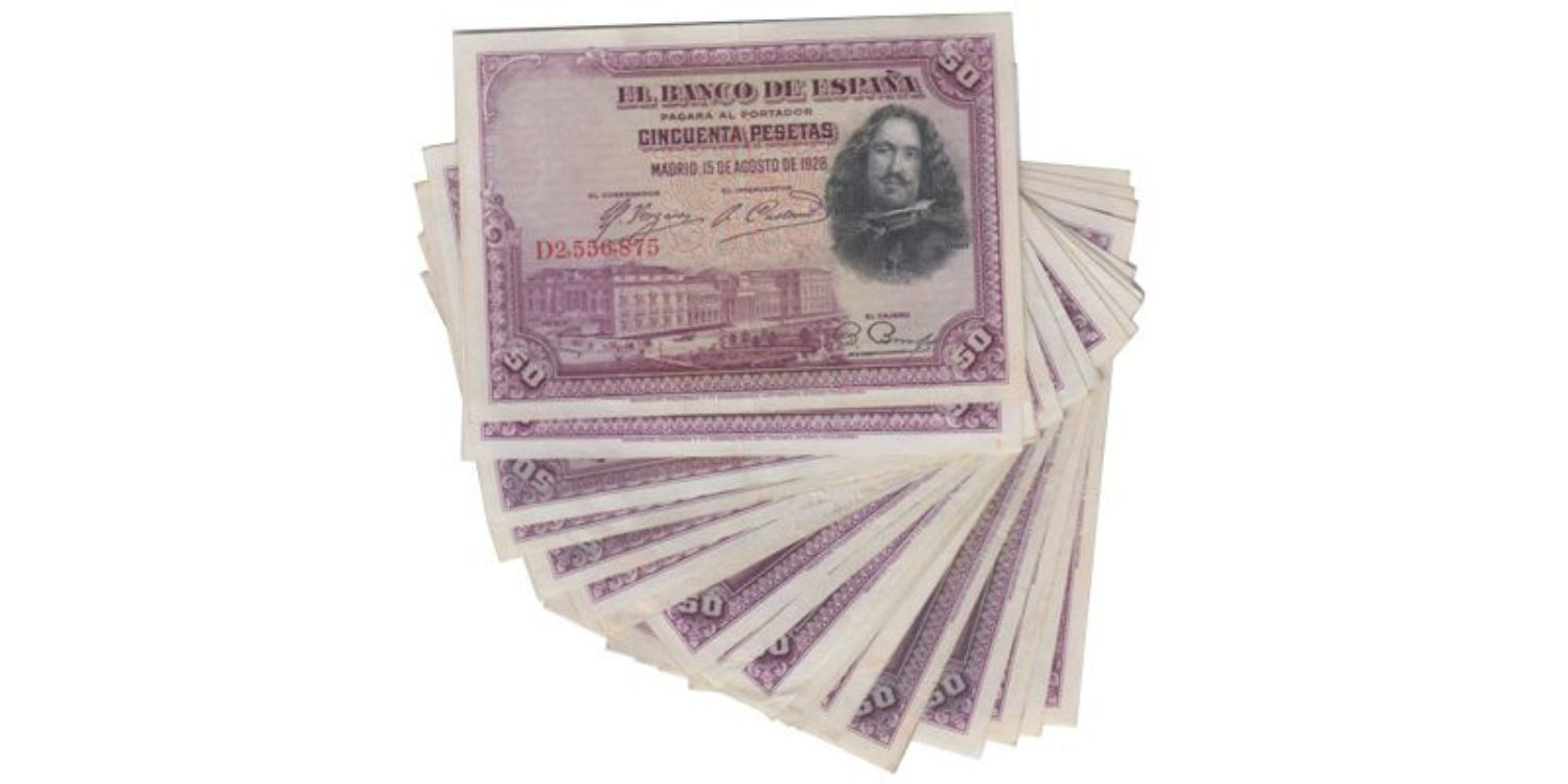 F349L.- Lote x 20 - 50 Pesetas 15 de Agosto 1928 MBC/EBC-