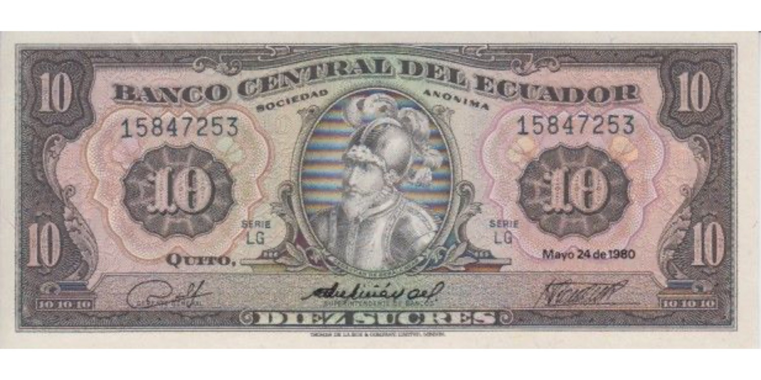 ECUADOR B-114 , 10 SUCRES 24/5/1980 , SC