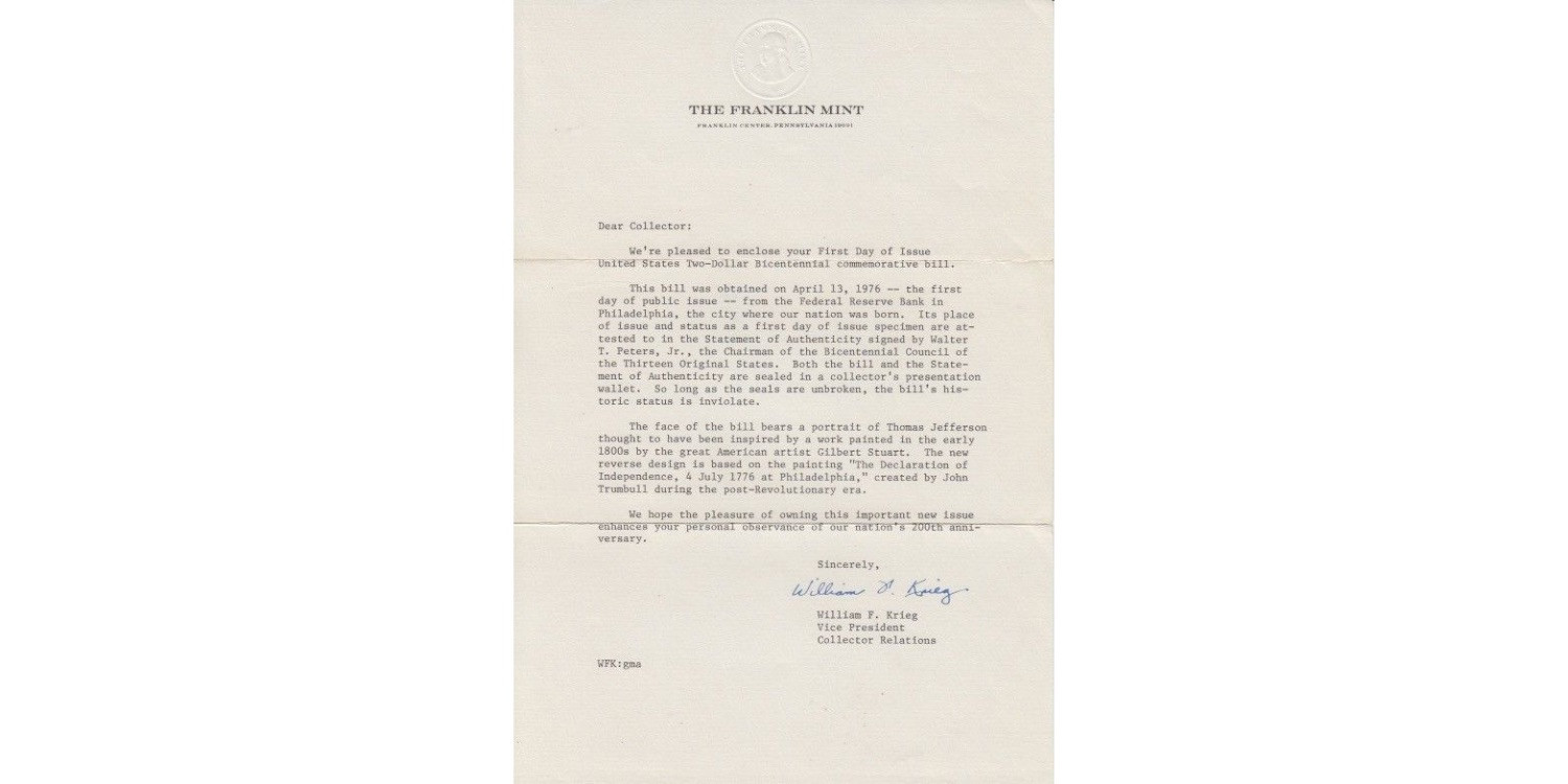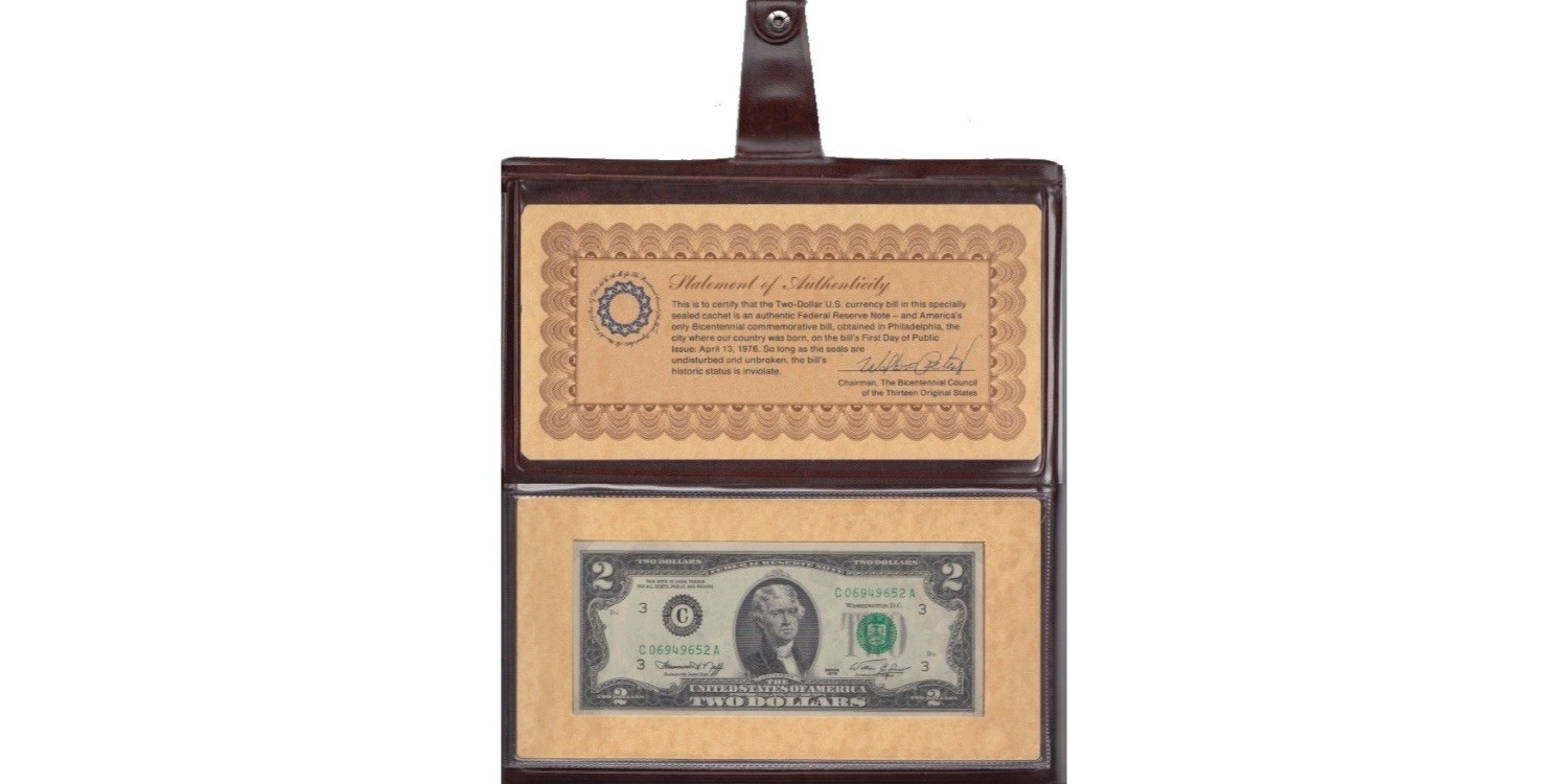 Estuche Presentación "Primer dia de Emisión" 13 de Abril de 1976 del billete de 2 dollar.