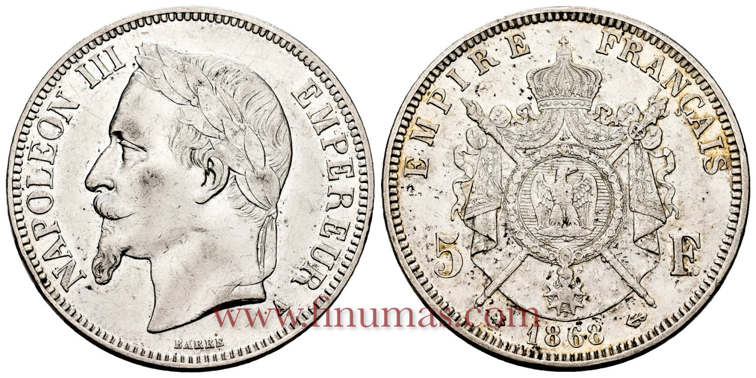 FRANCIA - K-799 - 5 Francos 1868A - EBC-