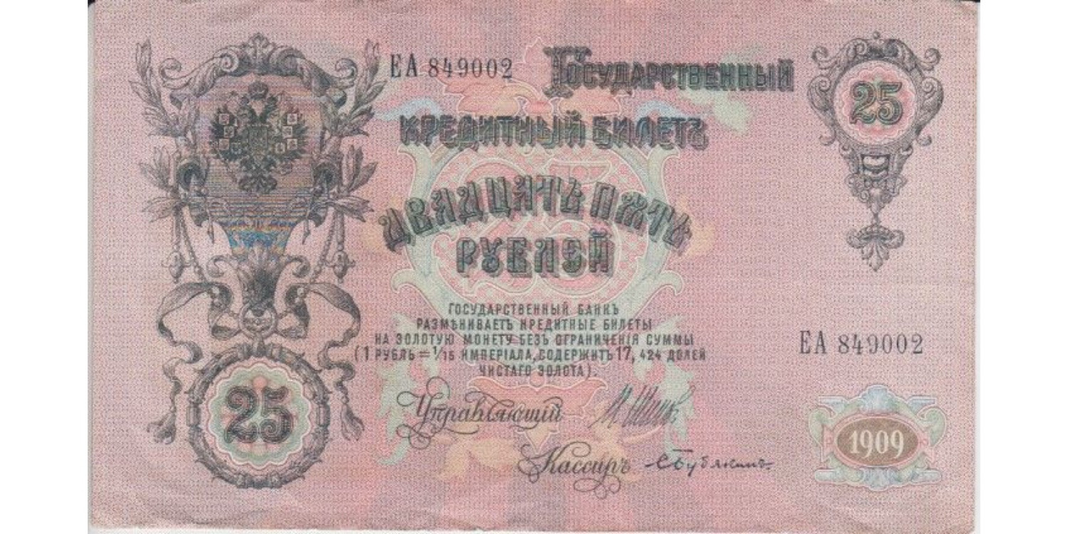 RUSIA B-012, 25 RUBLOS 1909 - MBC+