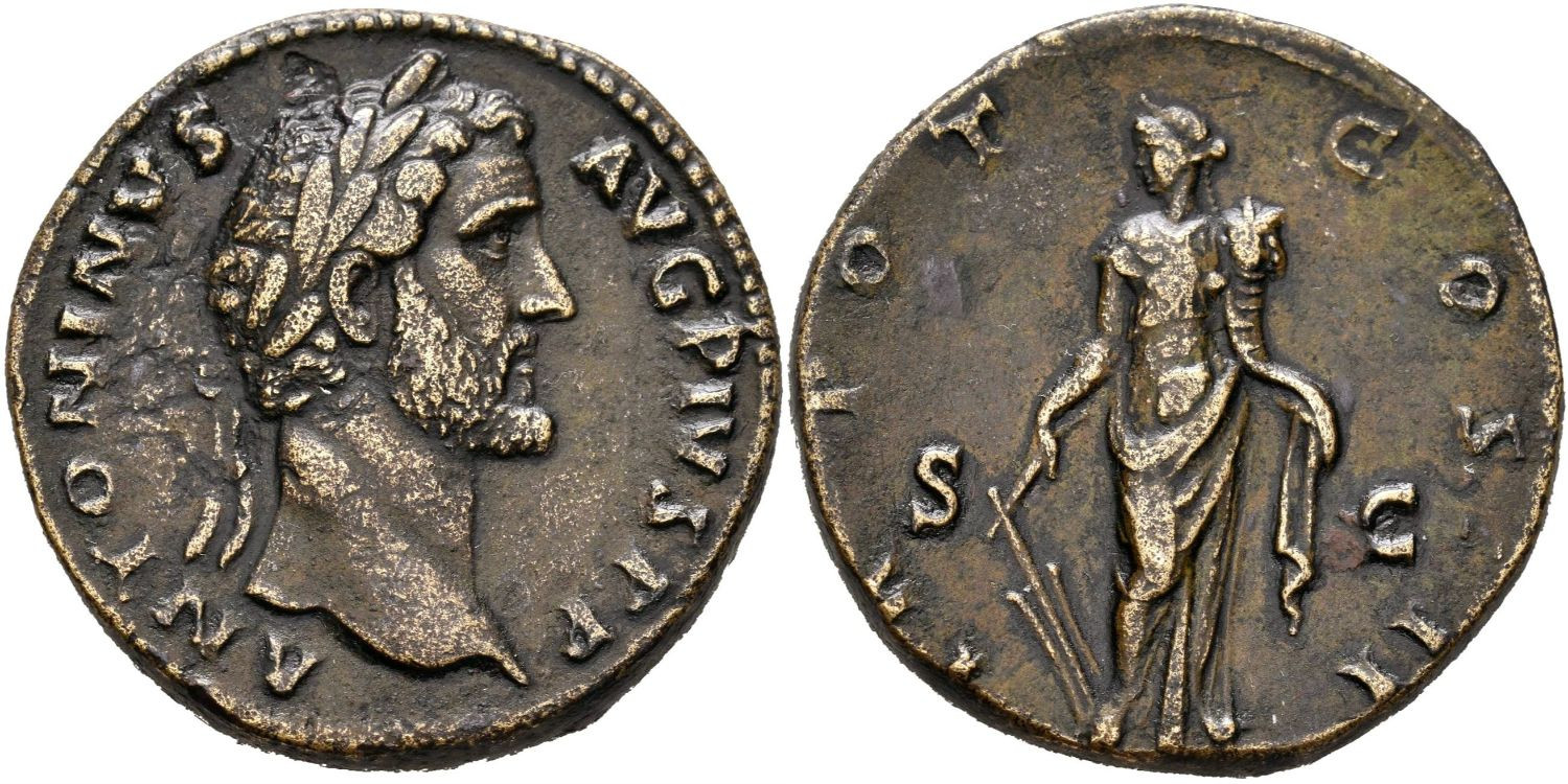 ANV: ANTONINVS AVG PIVS PP; Cabeza laureada a derechas