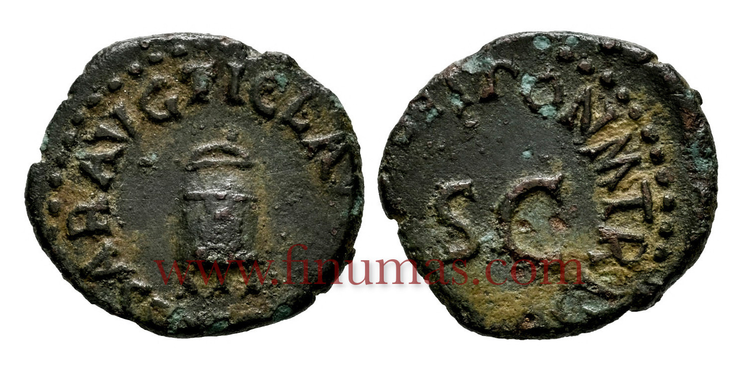 Anv: TI. CLAVDIVS CAESAR AVG rev:PON M TR P IMP P P COS II.. Cobre (Cu) 2,21gm ø15mm