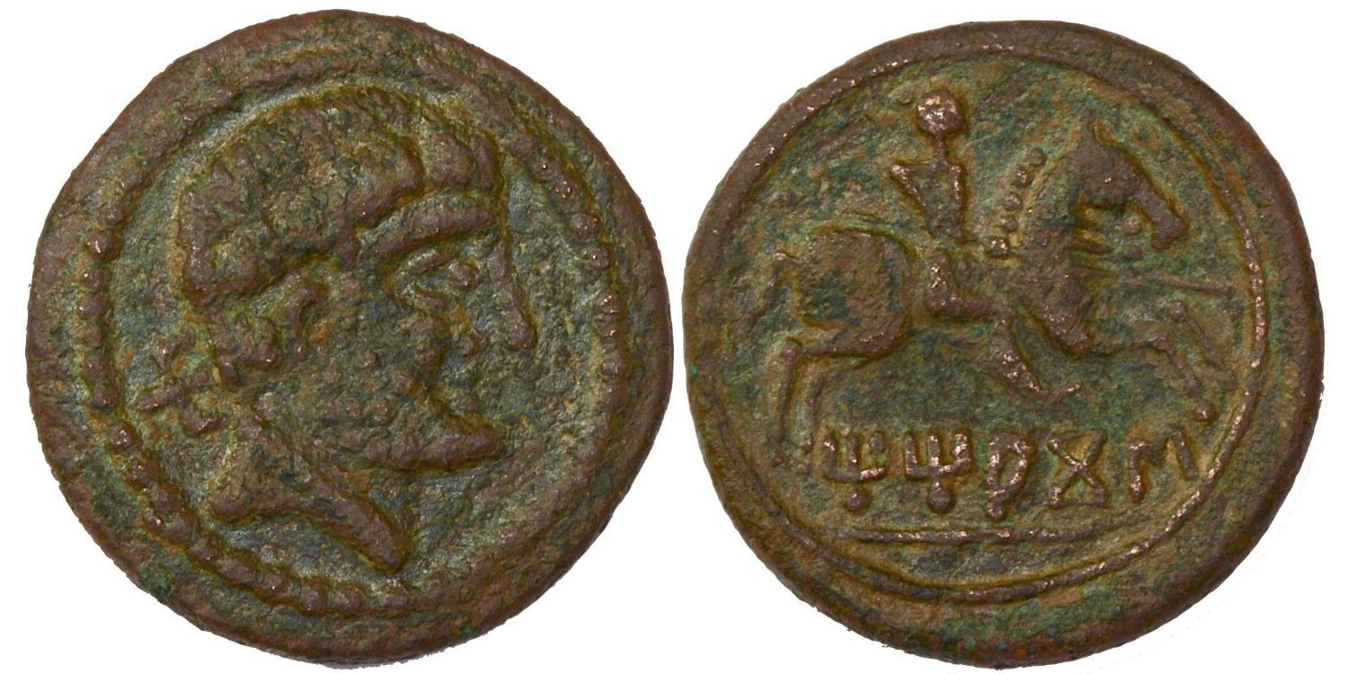 Rev.: Jinete con lanza, debajo leyenda ibérica TITIAKOS.