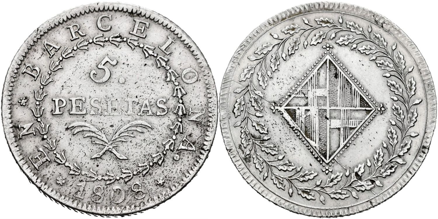 Cy13855.-JOSE NAPOLEON - 5 Pesetas 1808 Barcelona.-MBC