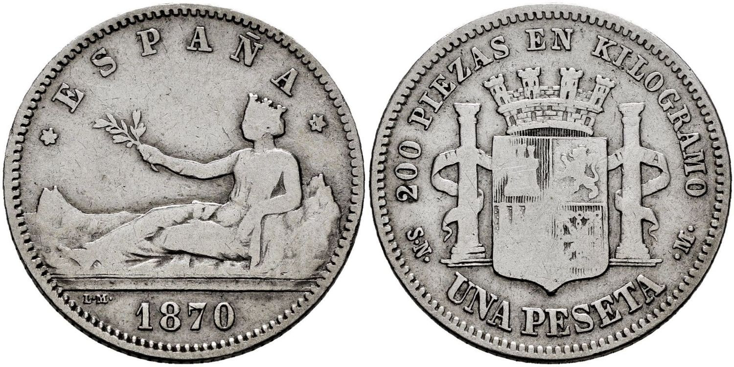 Cy16510C.-G.P Y I REPUBLICA 1 Peseta 1870(--) S.N.M.- BC