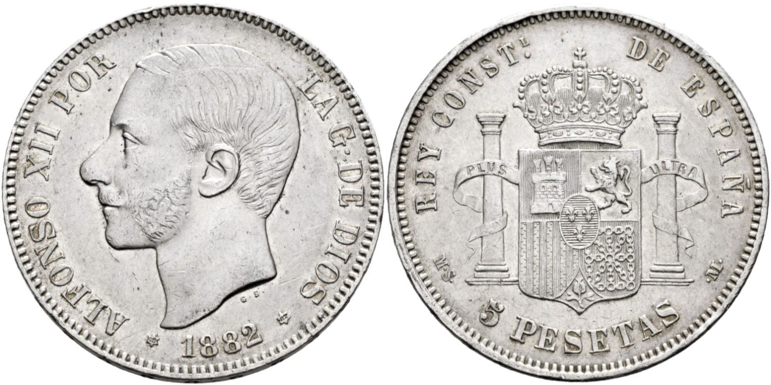 Cy16589F.- ALFONSO XII - 5 Pesetas 1882 MSM. MBC+