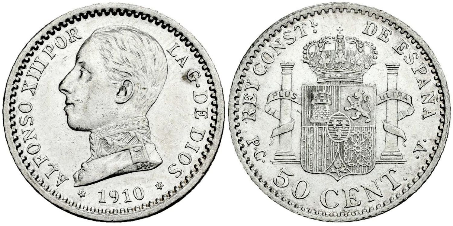 Cy16669k.- ALFONSO XIII 50 Centimos 1910 ( 1-0) P.C.V. -SC