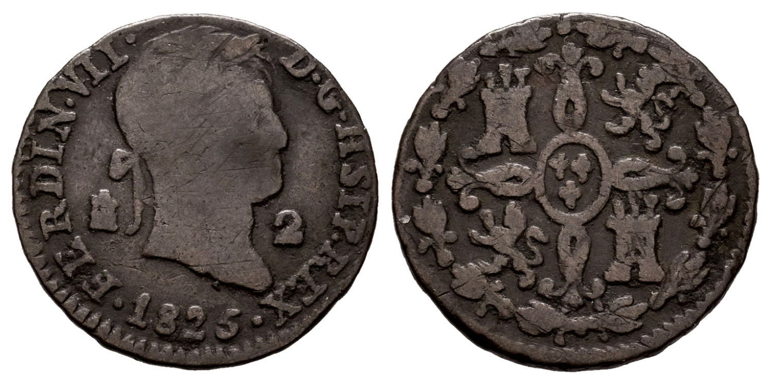 Cy13934.- FERNANDO VII -2 Maravedis 1825 Segovia HSIP - C