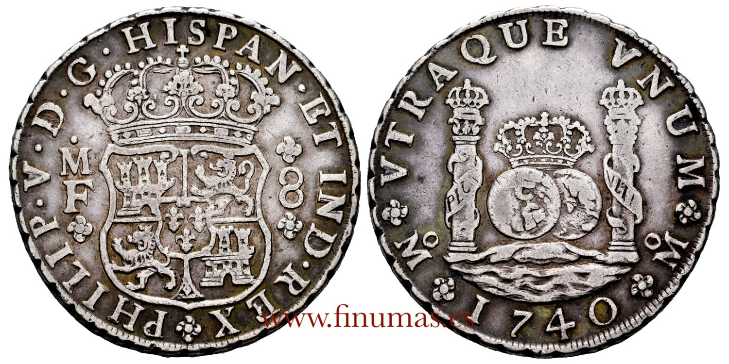 FELIPE V 1740. MF. 8 reales columnario. México. Plata (Ag) 26'93 gr. Bonita patina. MBC+/EBC-