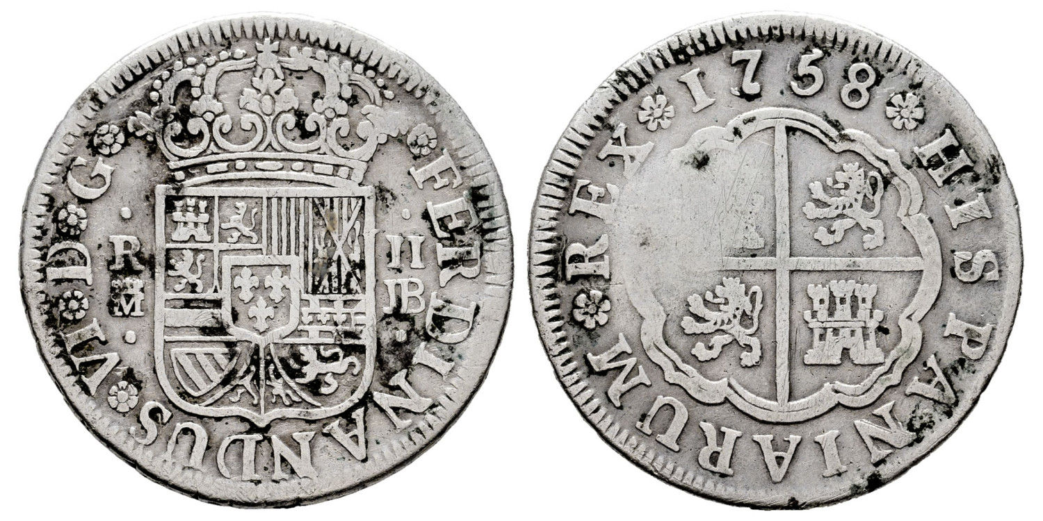 Cy09729.-FERNANDO VI - 2 Reales 1758 Madrid J.B.-BC-