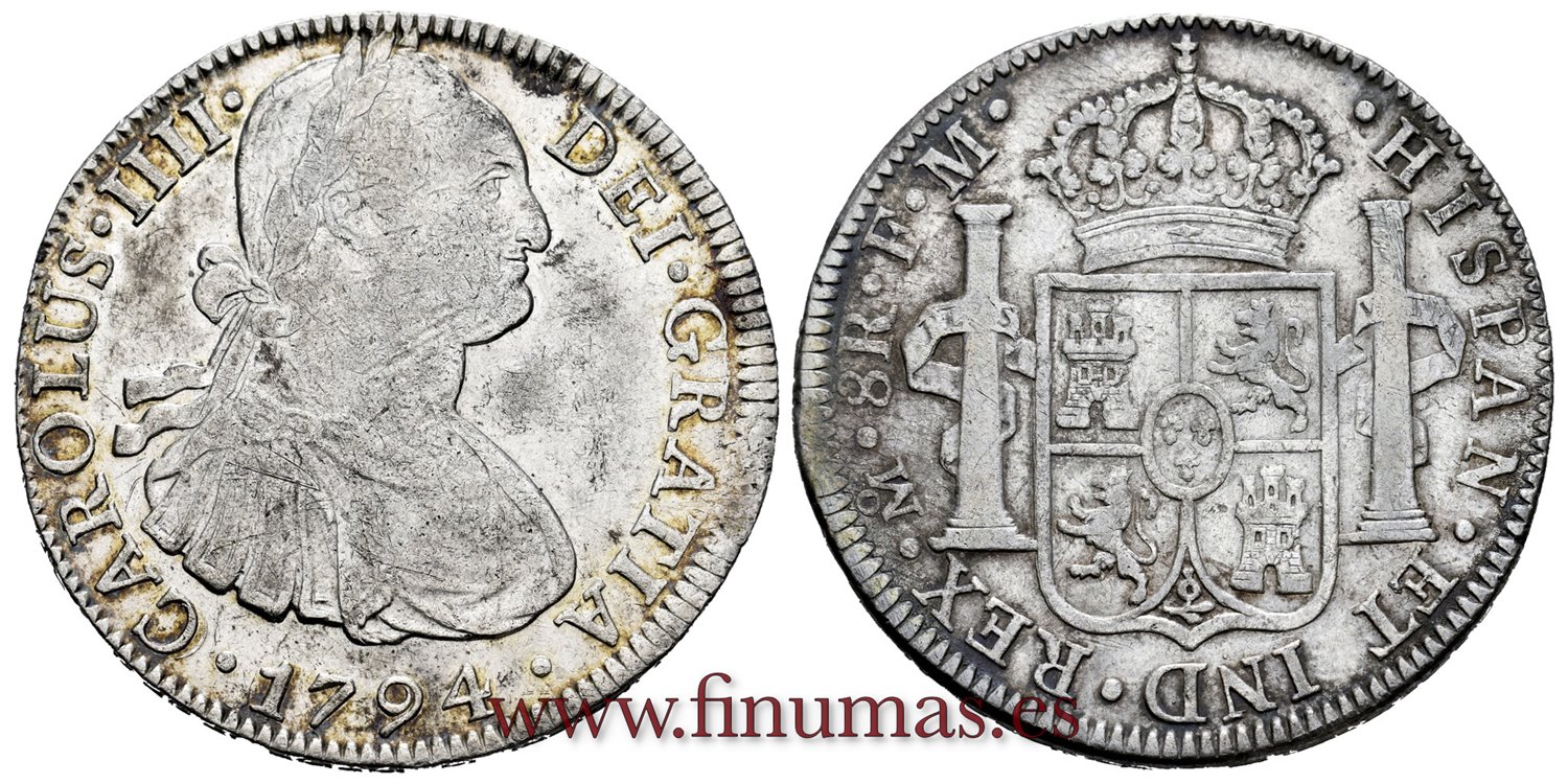 Cy13050.-CARLOS IV - 8 Reales 1794 Mexico F.M.-MBC+